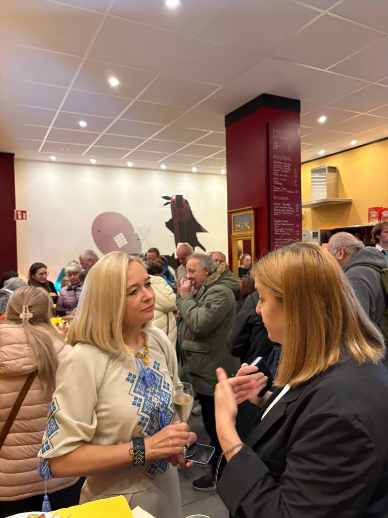 Der Abend begann mit einem festlichen Sektempfang 🥂 und köstlichen ukrainischen Spezialitäten 🥟🍰.