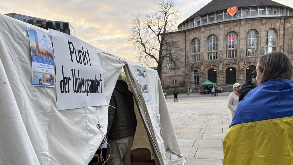 Ein Zelt als Mahnung: Freiburg erinnert an vier Jahre Krieg in der Ukraine