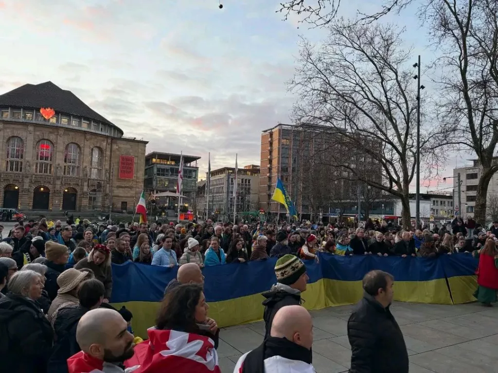 Mit einem sogenannten Freiheitsmarsch, einer Kundgebung und einer besonderen Solidaritätsaktion erinnerte die Deutsch-Ukrainische Gesellschaft Freiburg an den Beginn des russischen Angriffskriegs auf die Ukraine vor vier Jahren. Rund 700 Menschen versammelten sich in der Innenstadt, um gemeinsam ein Zeichen der Unterstützung zu setzen.