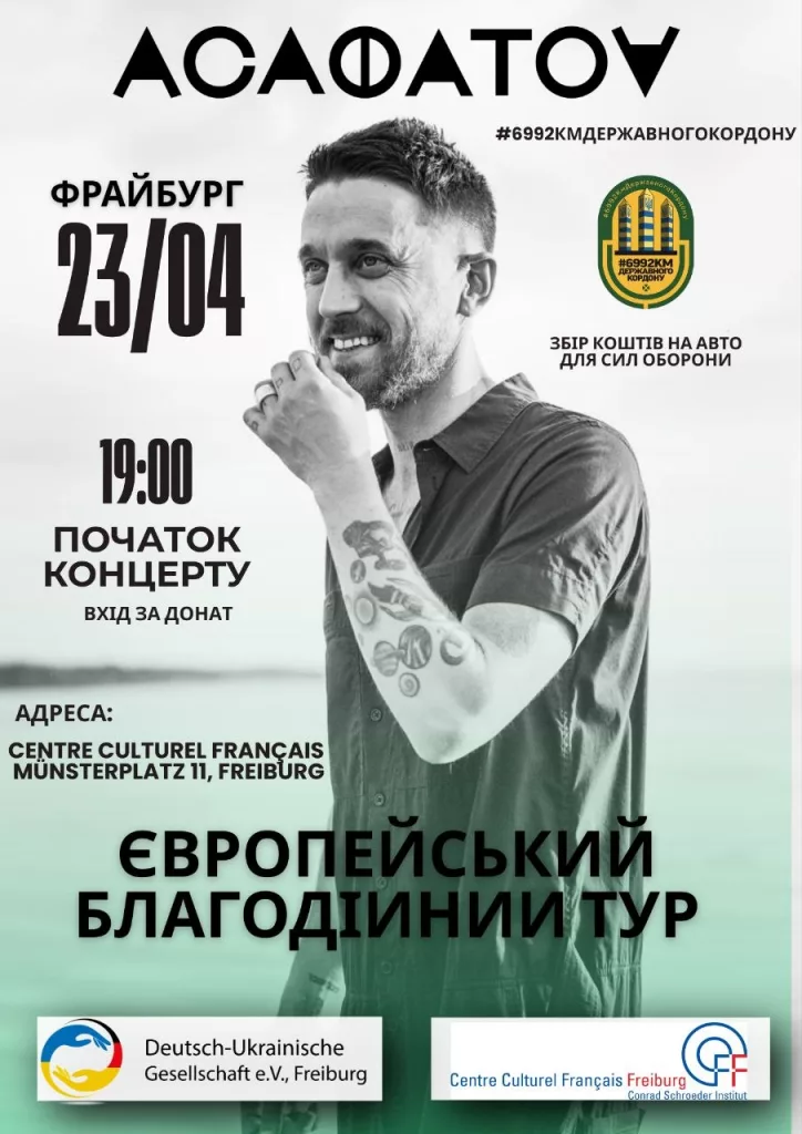 Запрошуємо на благодійний концерт Сергія Асафатова у Фрайбурзі у межах туру «6992 км державного кордону»